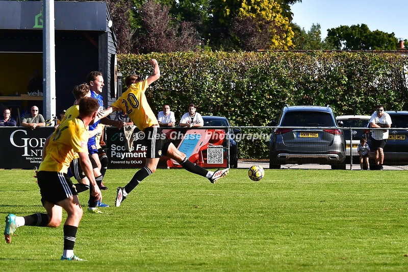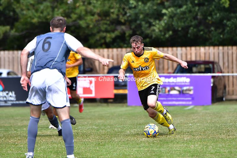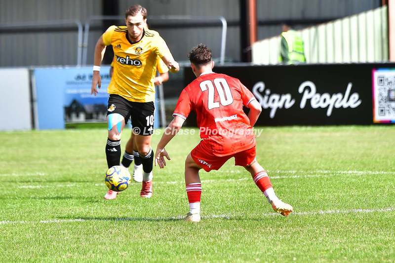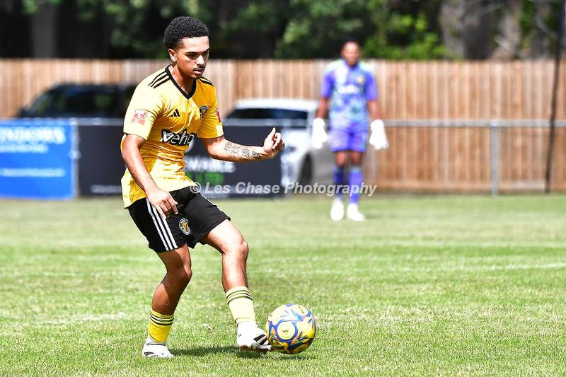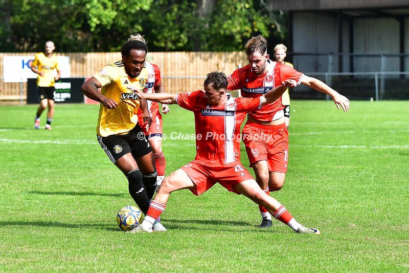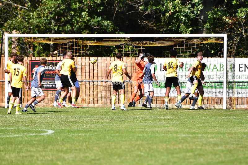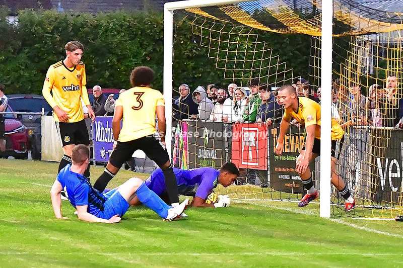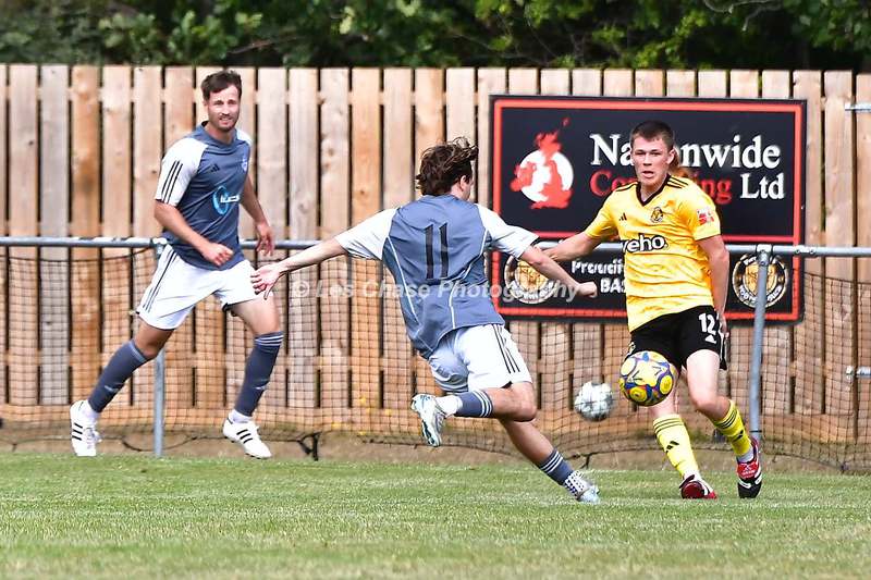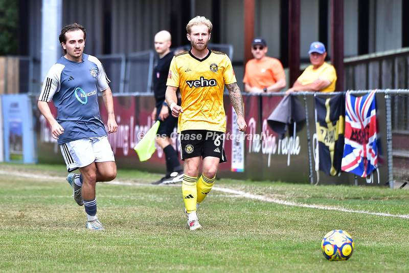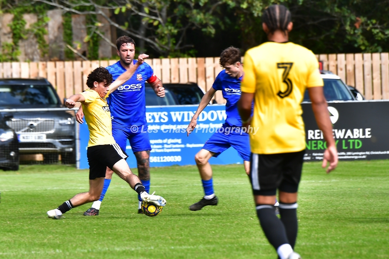 Bashley vs East Cowes Victoria Extra Preliminary Round 02/08/2025. Bashley in Gold Yellow Tops. Bashley win 1-0 in hot conditions.