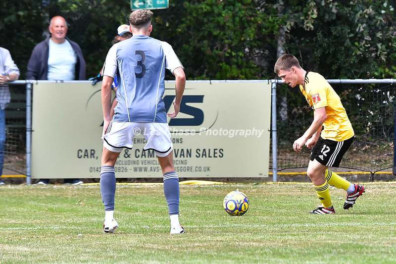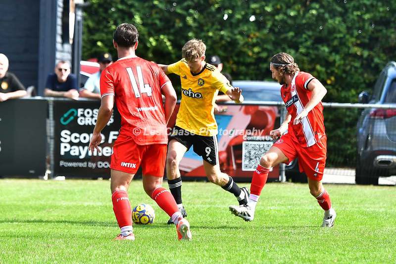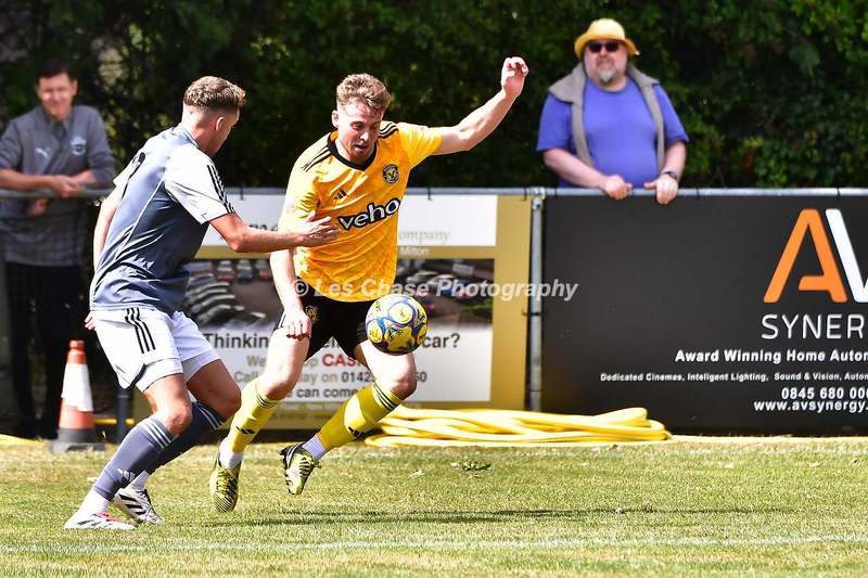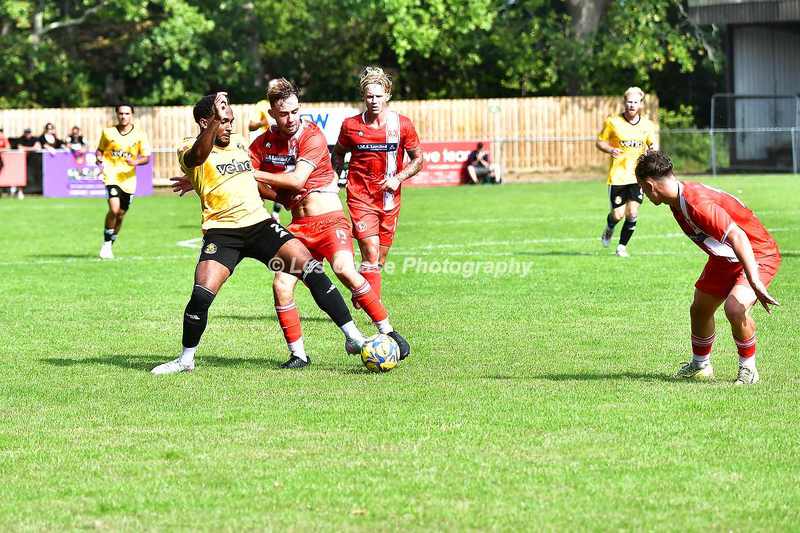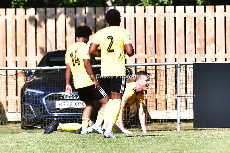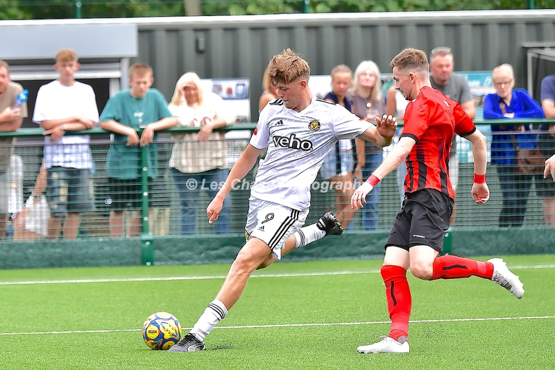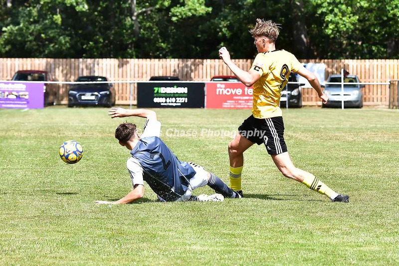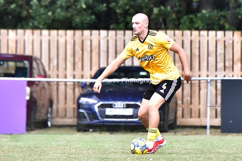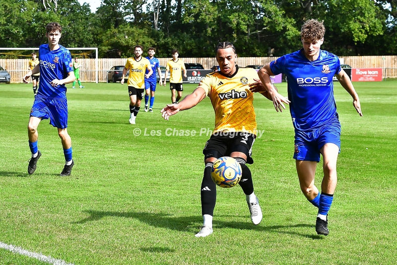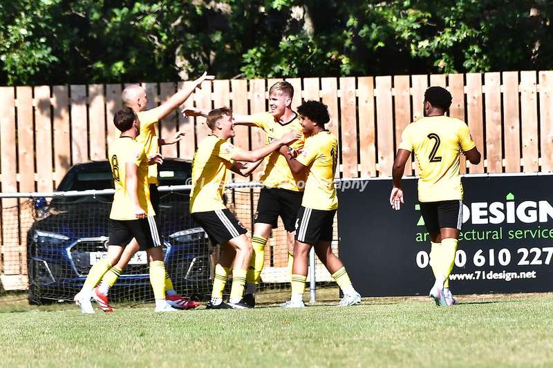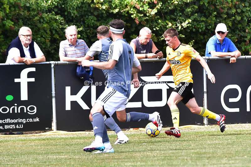 Bashley vs East Cowes Victoria Extra Preliminary Round 02/08/2025. Bashley in Gold Yellow Tops. Bashley win 1-0 in hot conditions.