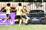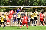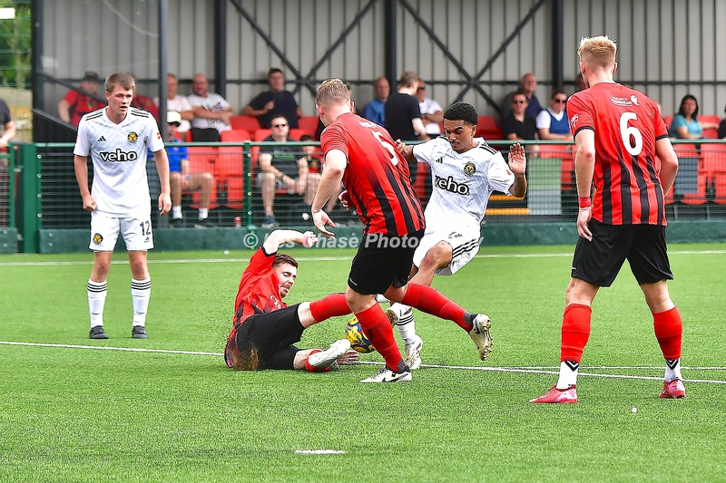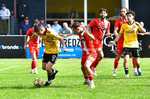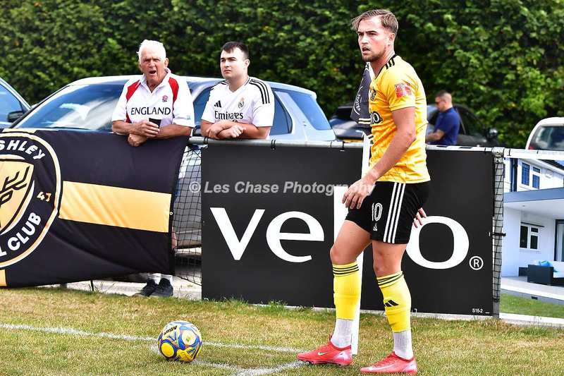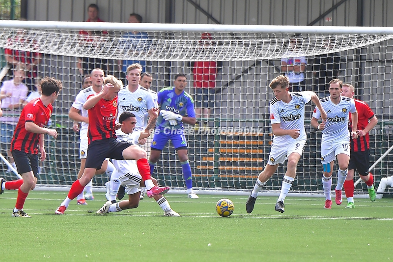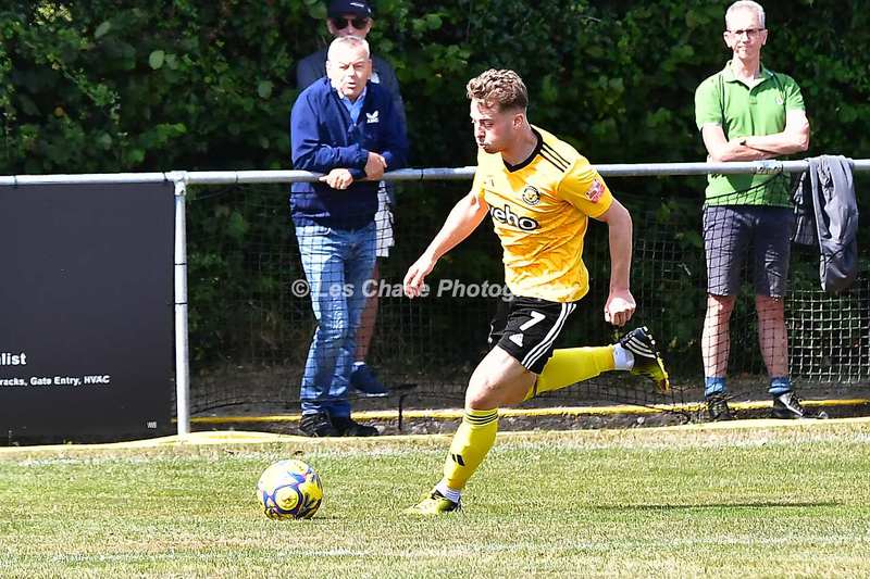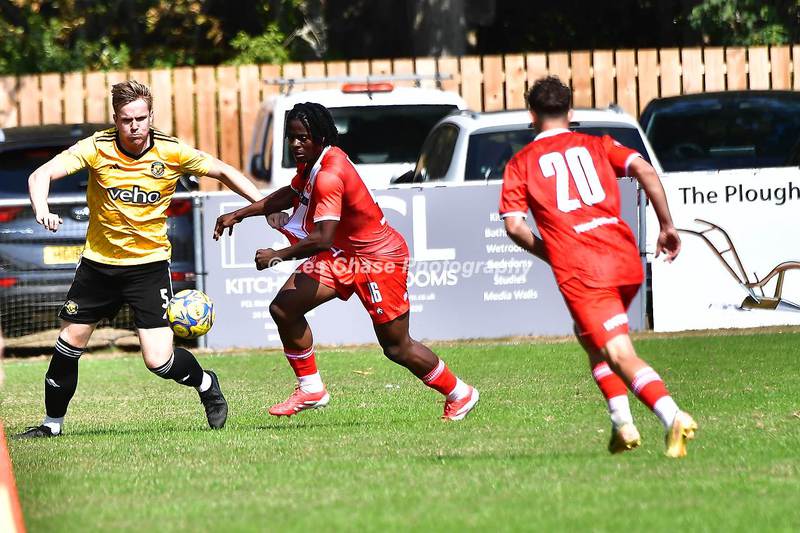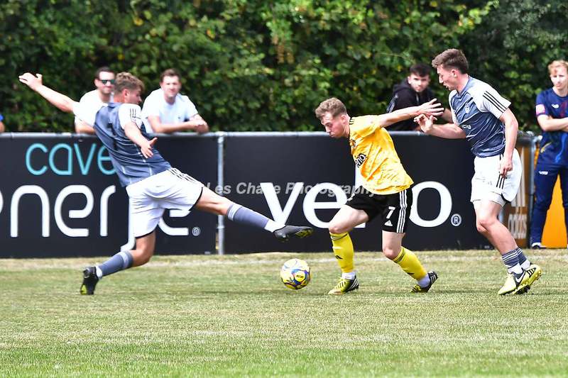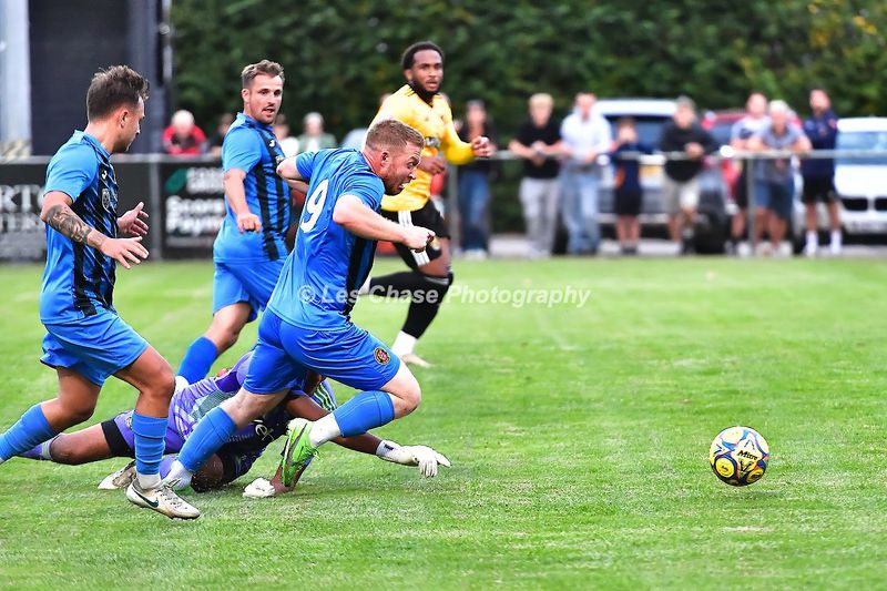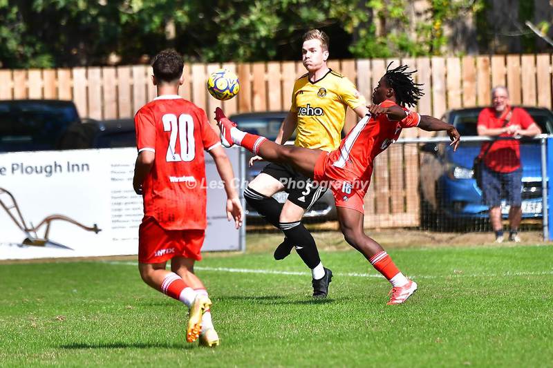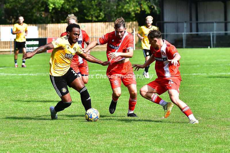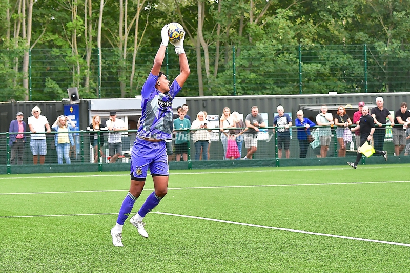Bashley vs East Cowes Victoria Extra Preliminary Round 02/08/2025. Bashley in Gold Yellow Tops. Bashley win 1-0 in hot conditions.