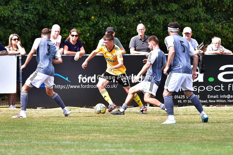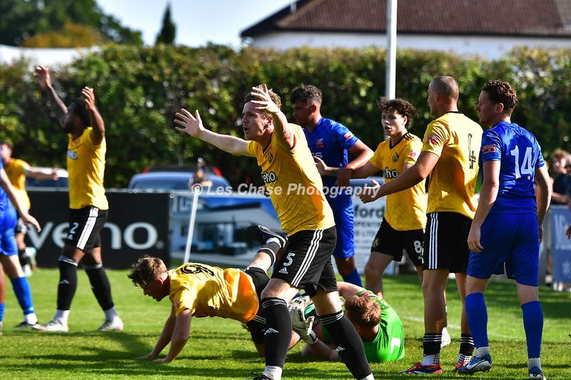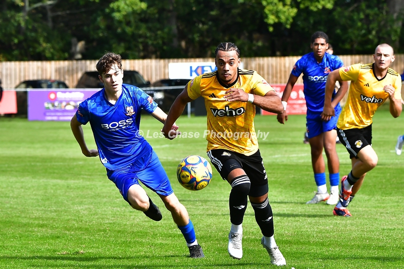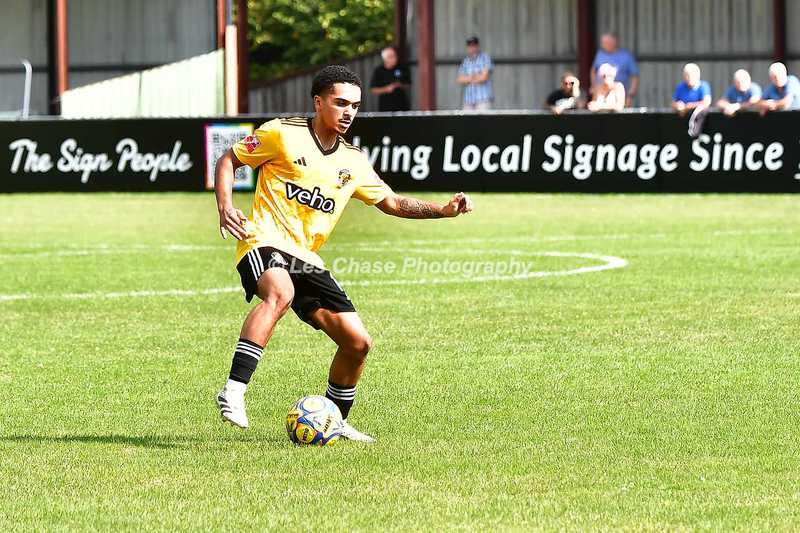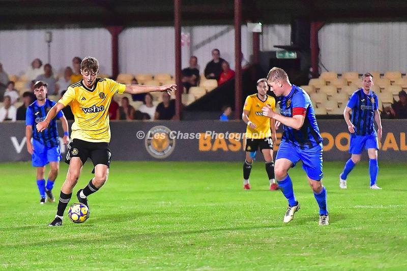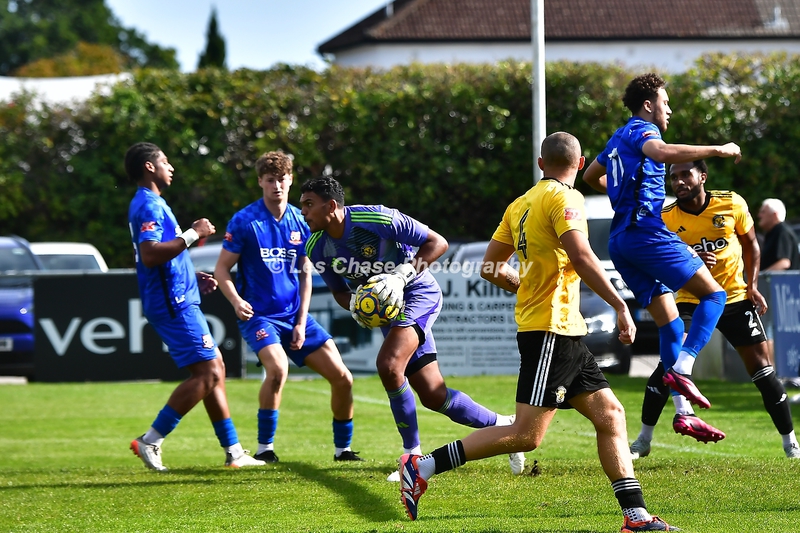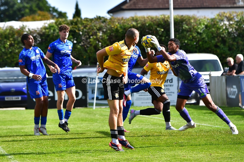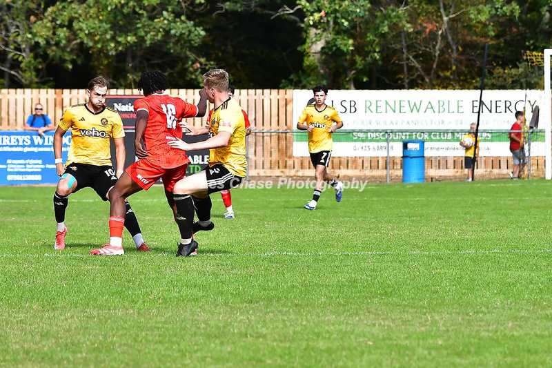 Bashley vs Frome Town FA Trophy Preliminary Round 23/08/2025. Bashley in Gold Yellow Tops. Frome win 0-3