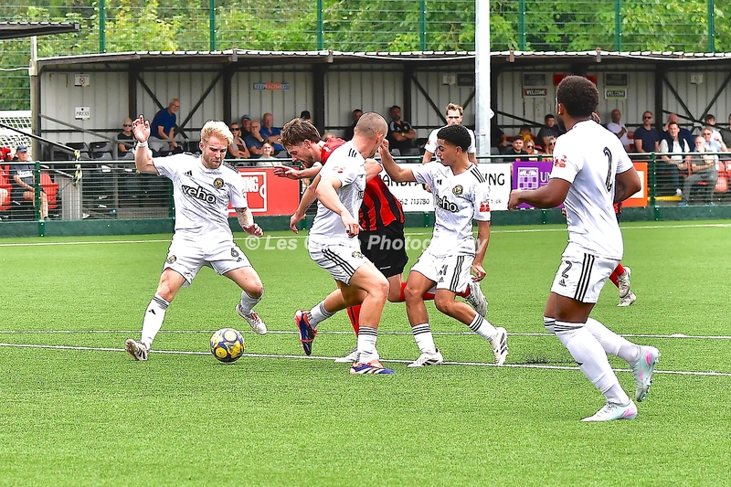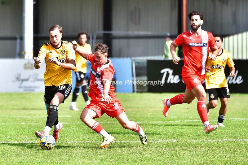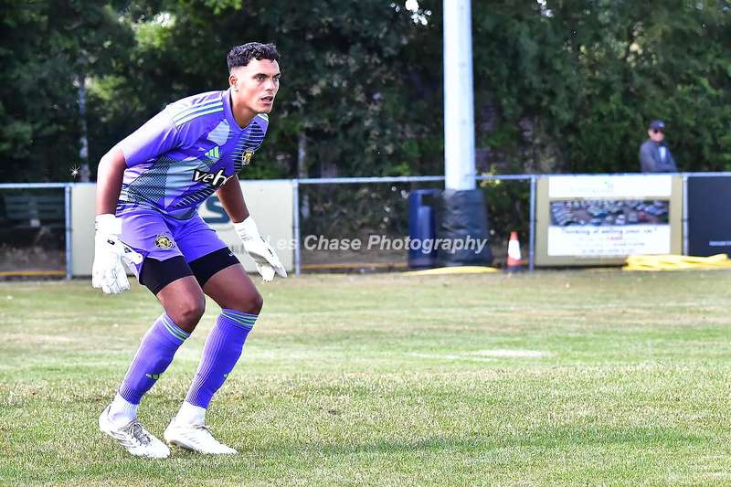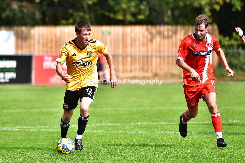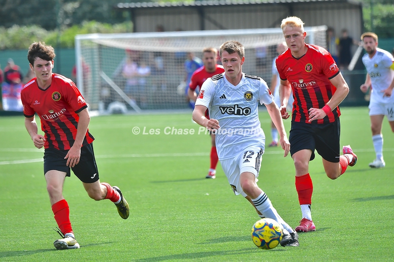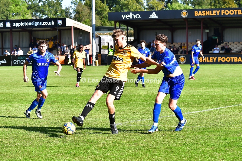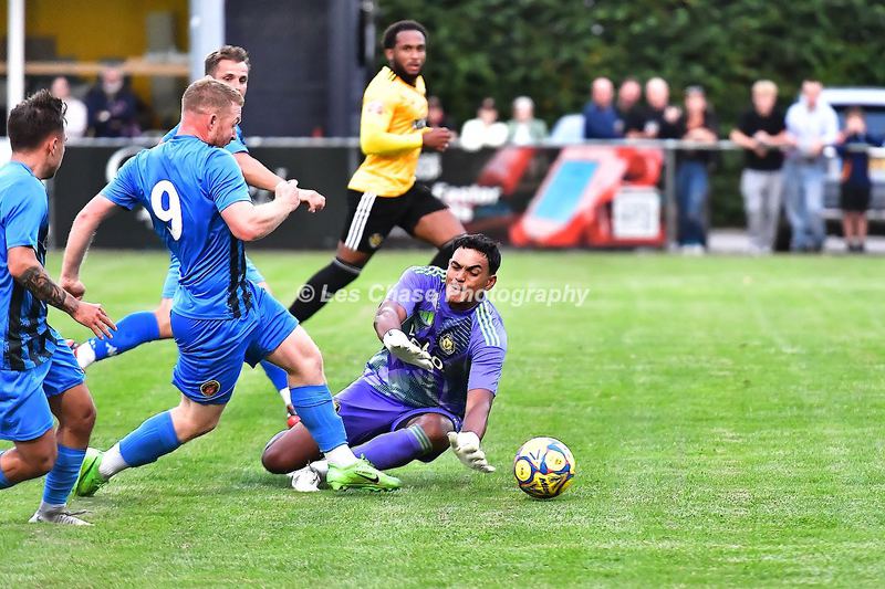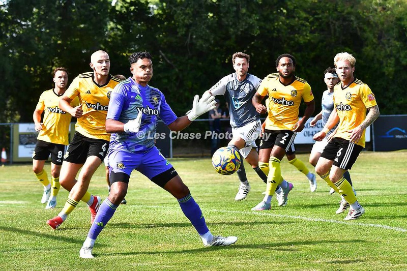 Bashley vs Frome Town FA Trophy Preliminary Round 23/08/2025. Bashley in Gold Yellow Tops. Frome win 0-3