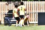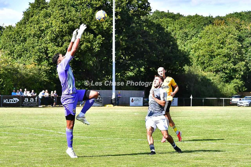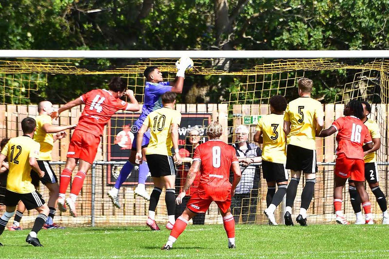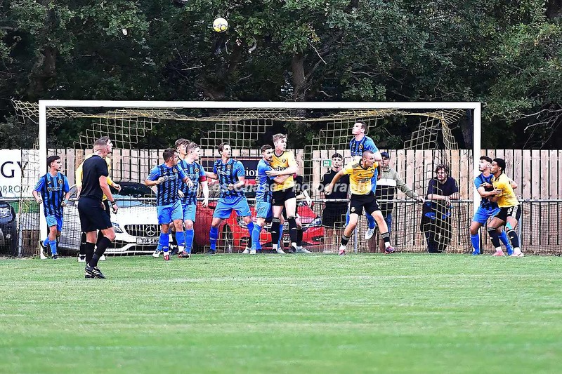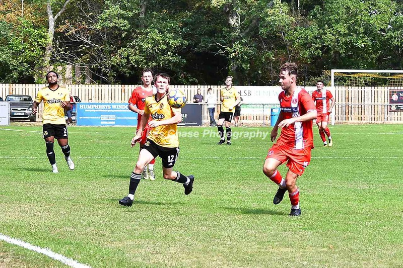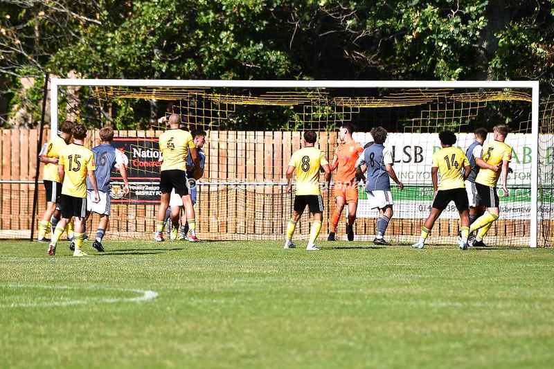 Bashley vs Hartley Wintney Hampshire Senior Cup Round 2 06/09/2025. Bashley in Gold Yellow Tops. Hartley win 0-1 with 10 men for second half.