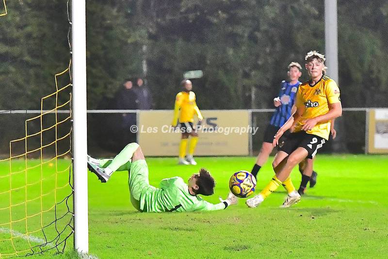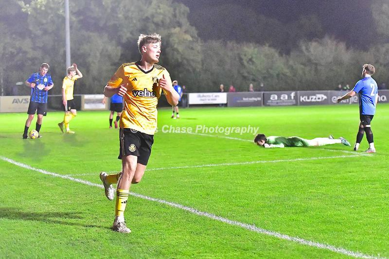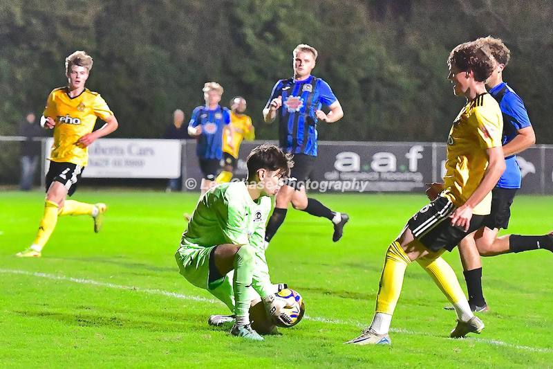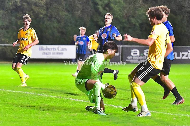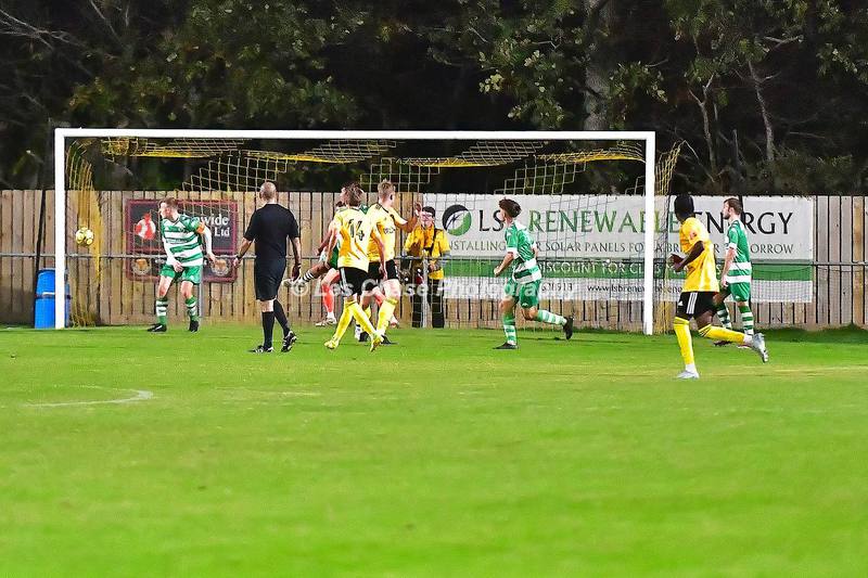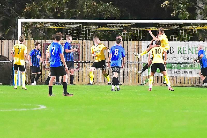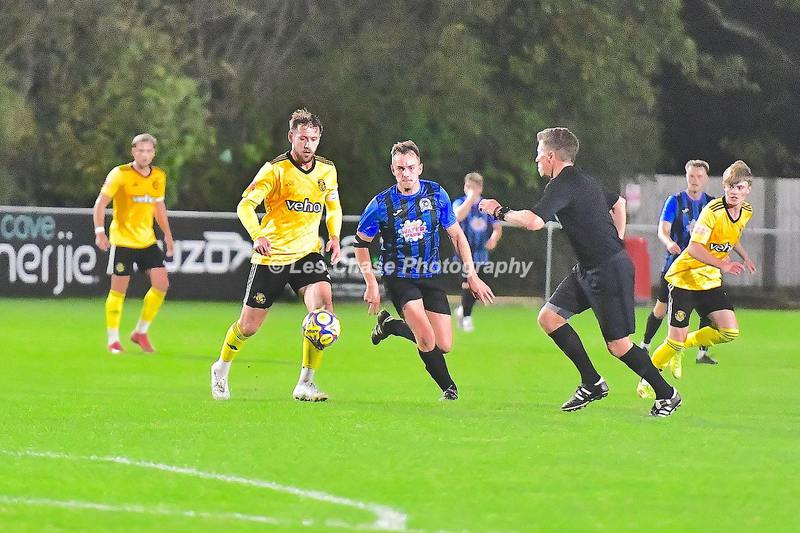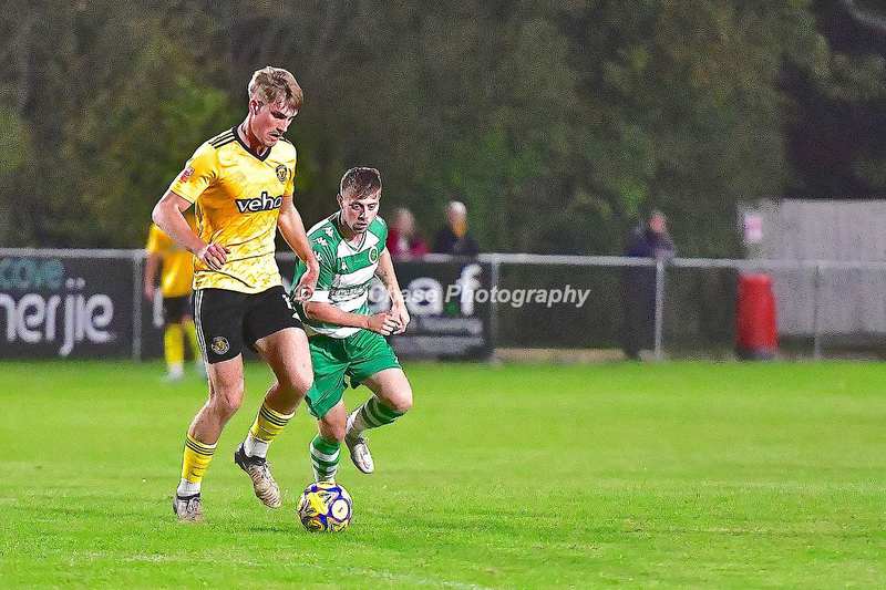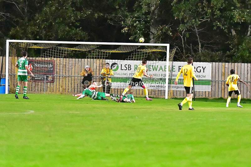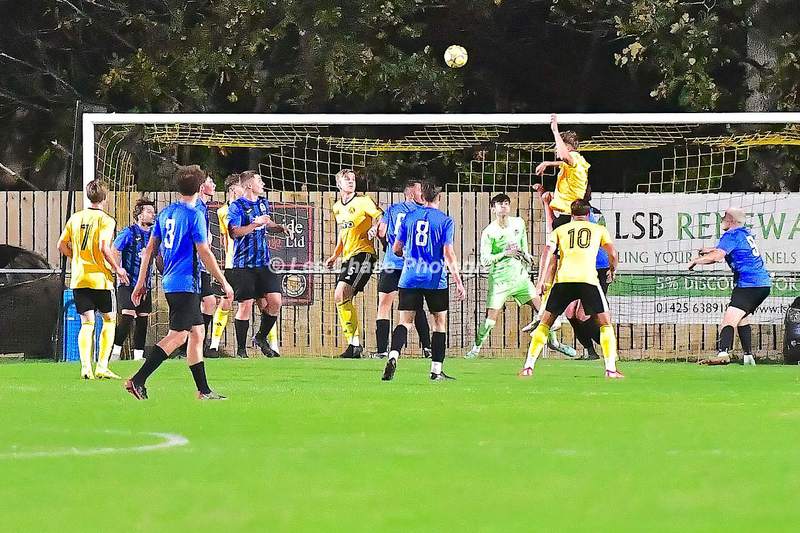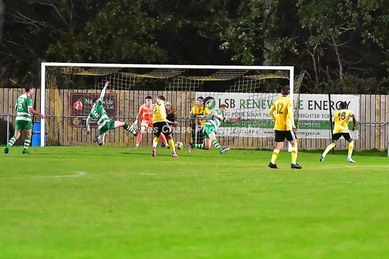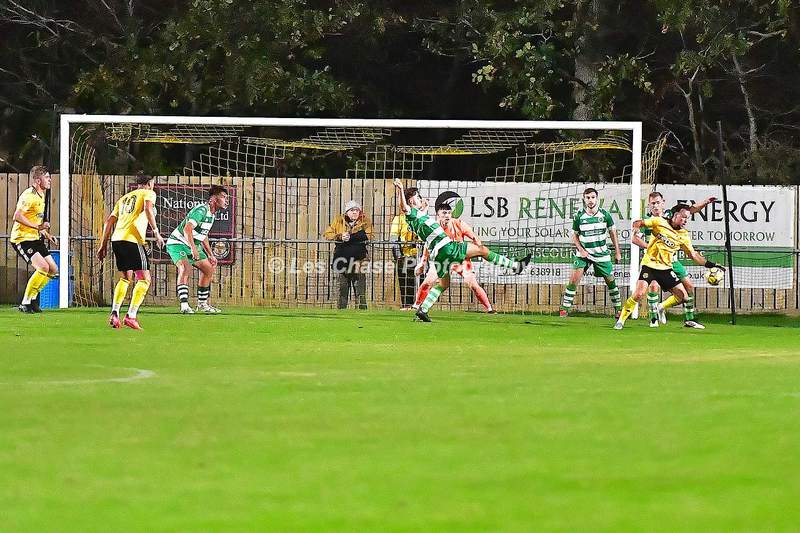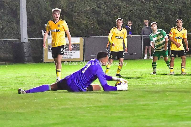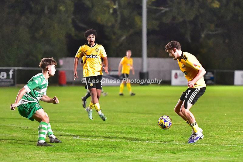 Bashley vs Laverstock & Ford Russell Cotes Cup Round 2 07/10/2025. Bashley win 4-3 0n Penalties. Bashley in Gold Yellow Tops.