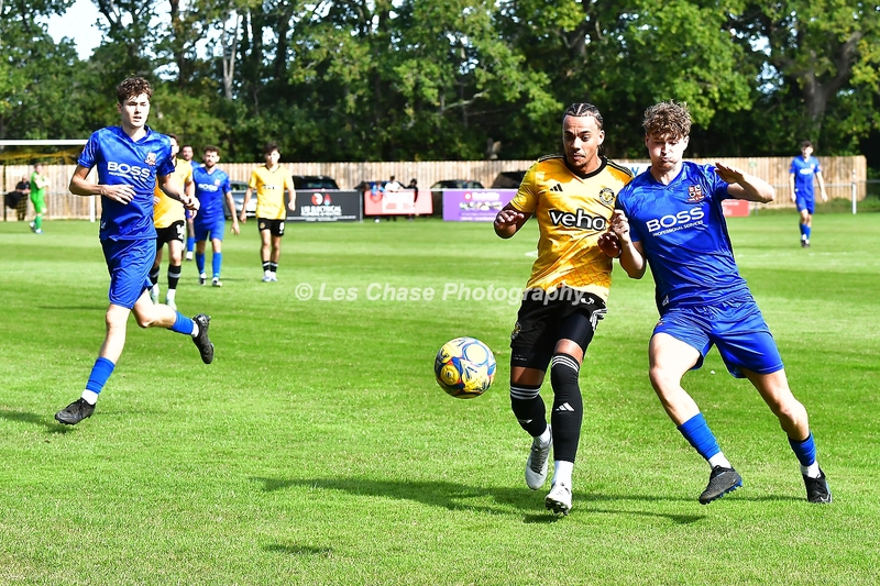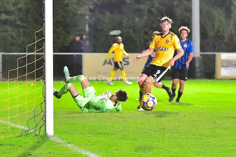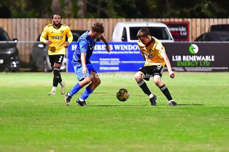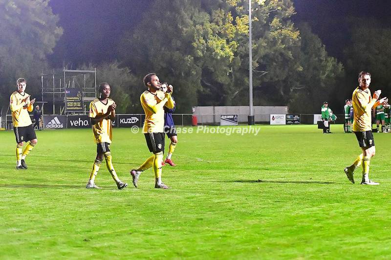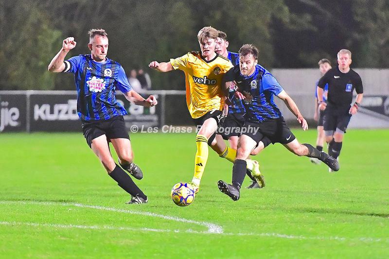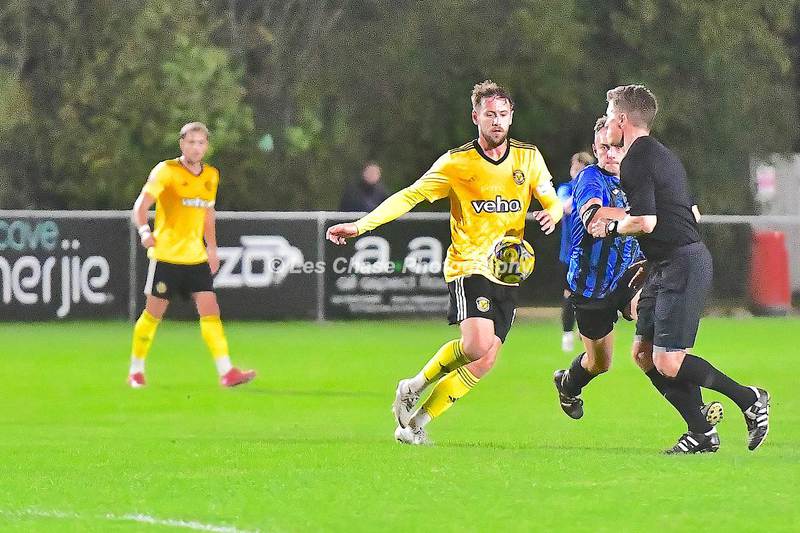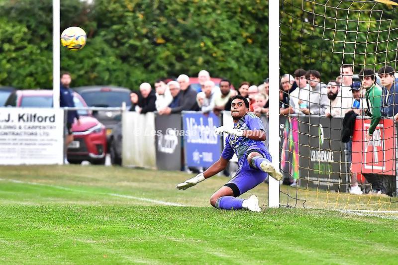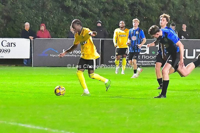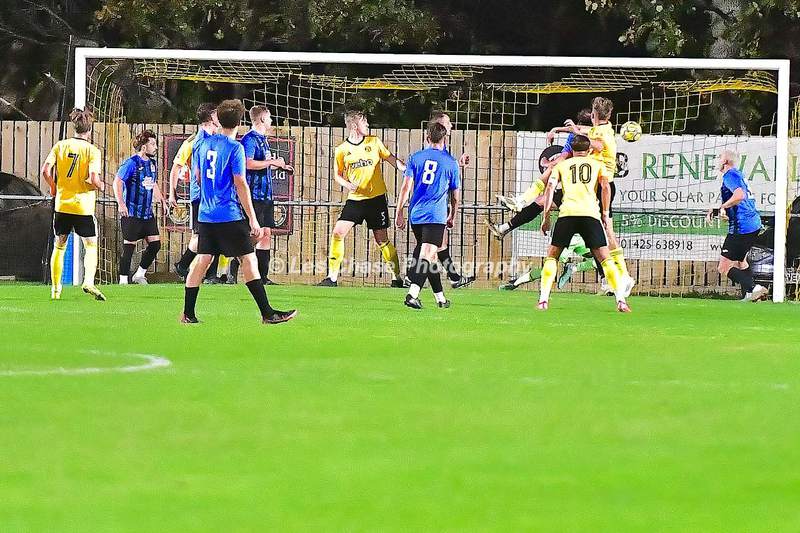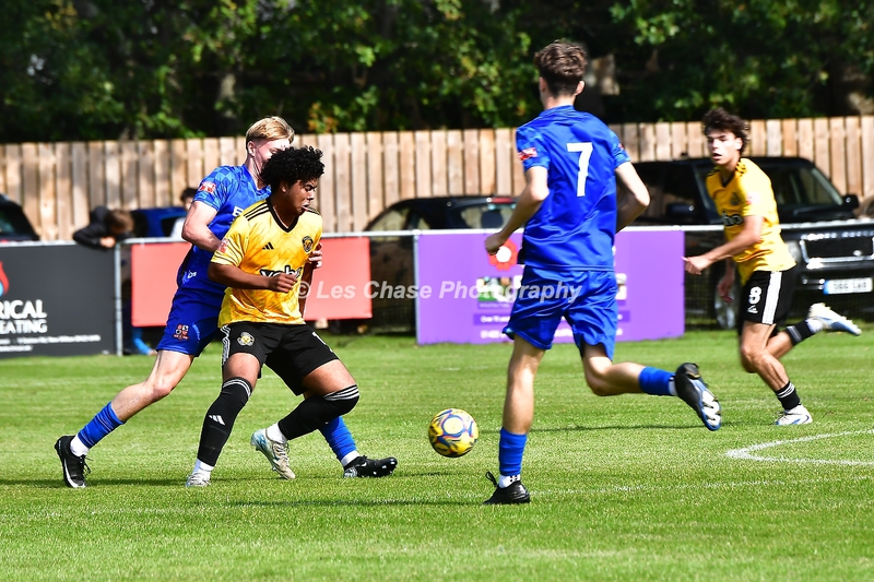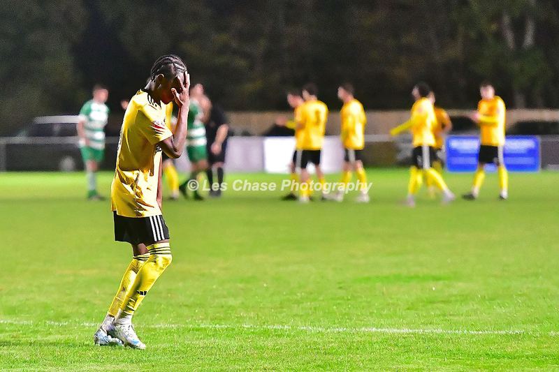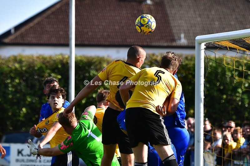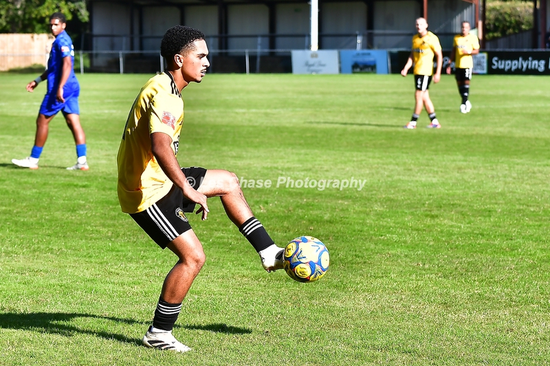 Bashley vs Laverstock & Ford Russell Cotes Cup Round 2 07/10/2025. Bashley win 4-3 0n Penalties. Bashley in Gold Yellow Tops.