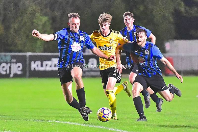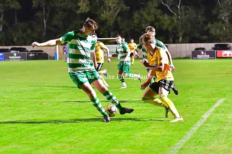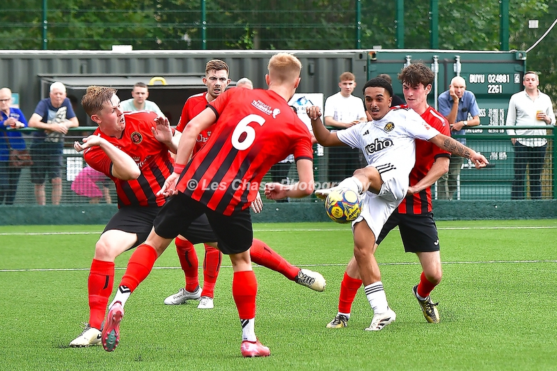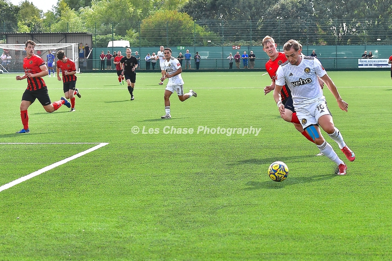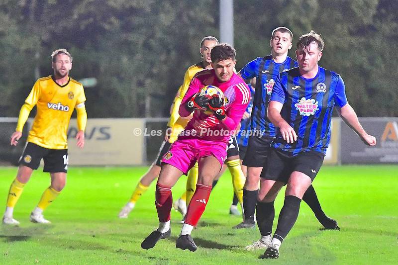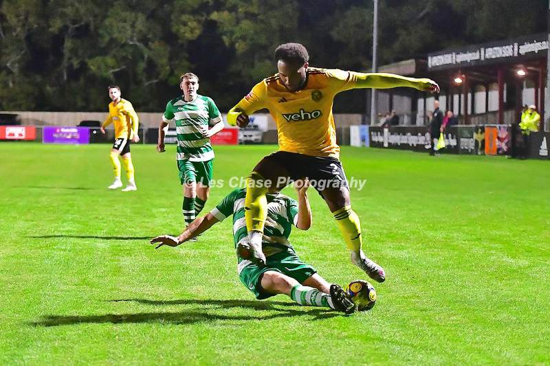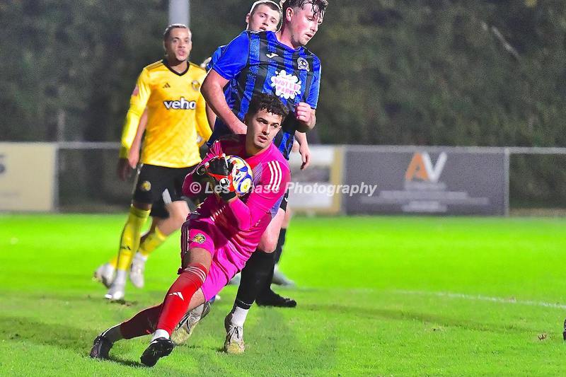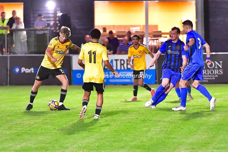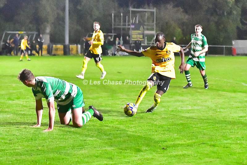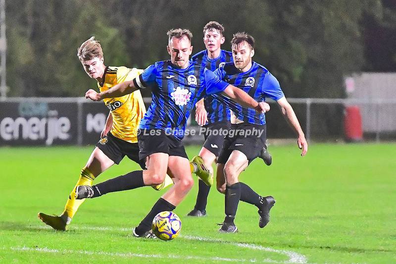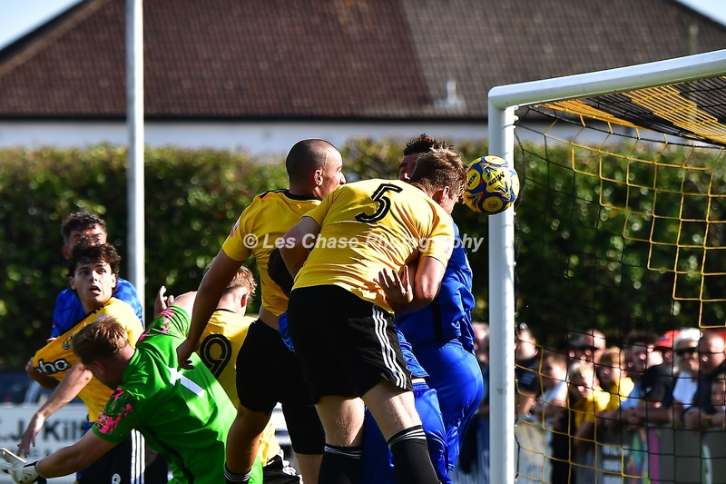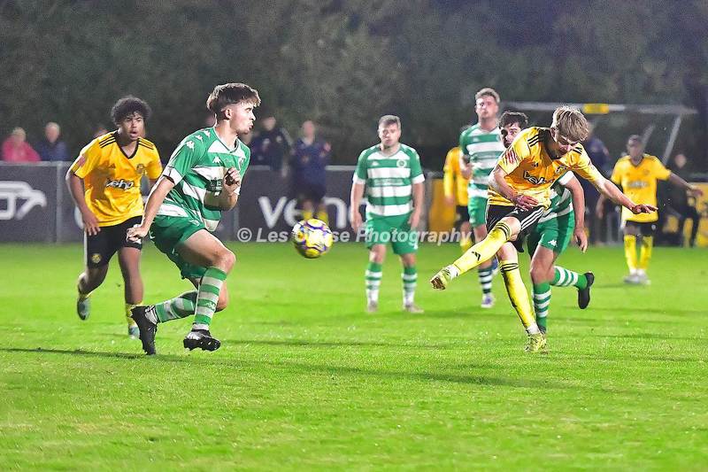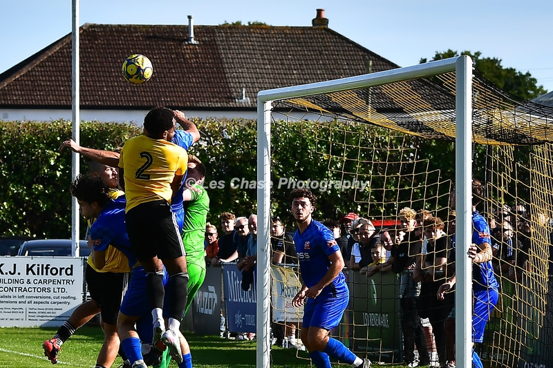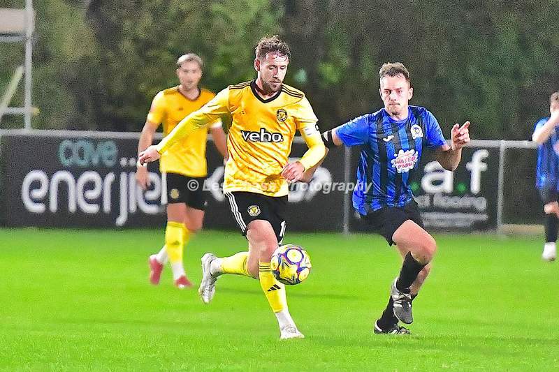 Bashley vs Laverstock & Ford Russell Cotes Cup Round 2 07/10/2025. Bashley win 4-3 0n Penalties. Bashley in Gold Yellow Tops.