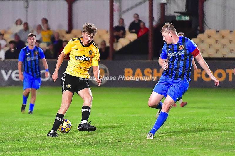 Bashley vs Winchester City Preliminary Round Replay 19/08/2025 at Bashley. Bashley in Home Yellow Gold Tops. Winchester win 0-1 and home to Fareham Town next round