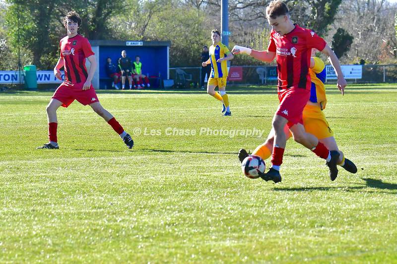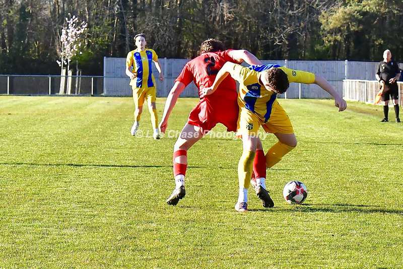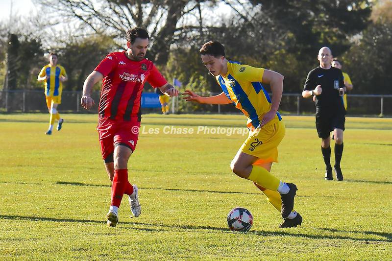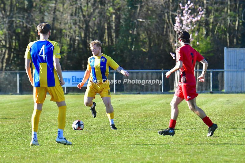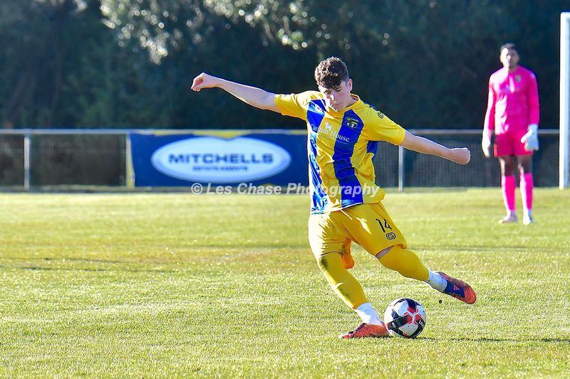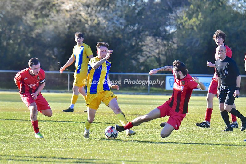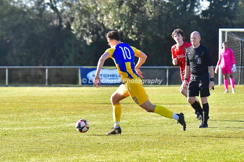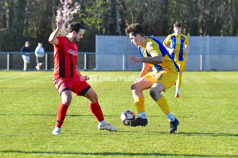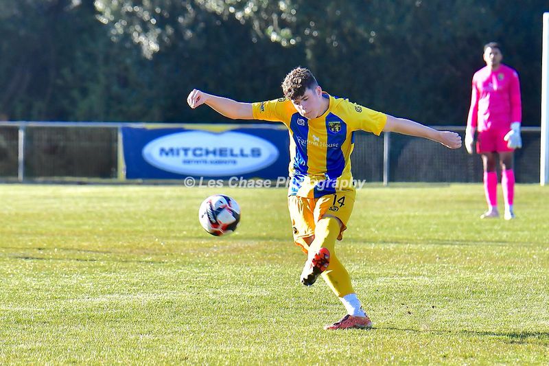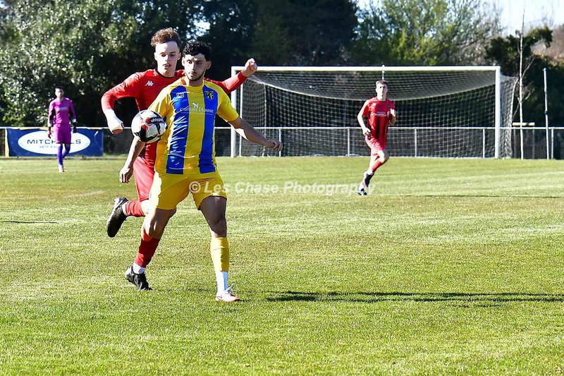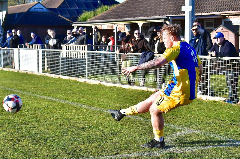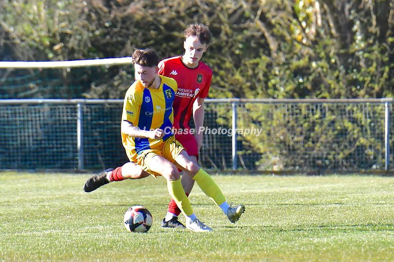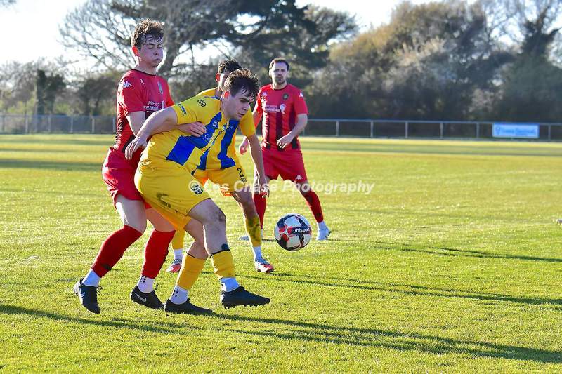 New Milton vs Petersfield Town Wessex Premier Division 28/02/2026. New Milton in Yellow Blue Tops. Score is a 1-1 Draw